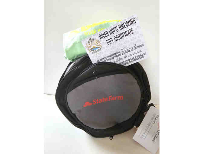 Enjoy a night out River Hops Brewery in historic downtown Fort Dodge! This package comes with one of their signiture t-shirts in a size large and a handy portable BBQ/Cooler Tote from State Farm Jeff Haupts.