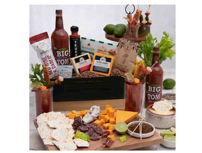 Bloody Mary Experience- the Bloody Mary Bar Box! Perfect for any brunch lover, this curated selection of essentials and snacks will elevate any brunch game. The package includes all the key ingredients to craft the ideal bloody Mary, including:
