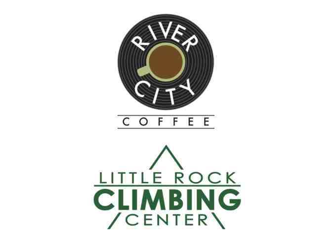 5 visit punch card to Little Rock Climbing Center. Does not include rental gear or additional services. $50 gift certificate to River City Coffee.