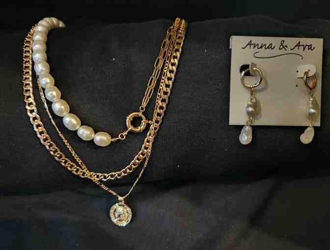 Anna & Ava Pearl Gold Necklace and Earrings