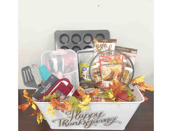 EVERYTHING you need for your holiday baking AND MORE! From quick cookies and muffins to elaboratly decorated creations. This basket has a decorator kit, baking pans, cookie plate, potholders and SO MUCH MORE! It would be a super fun gift to give to someone just starting out as well.