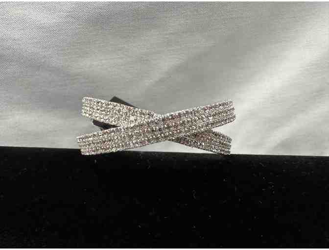 Stunning Crystal Rhinestone Criss Cross Flexible Wire Cuff Bracelet, for that evening on the town.