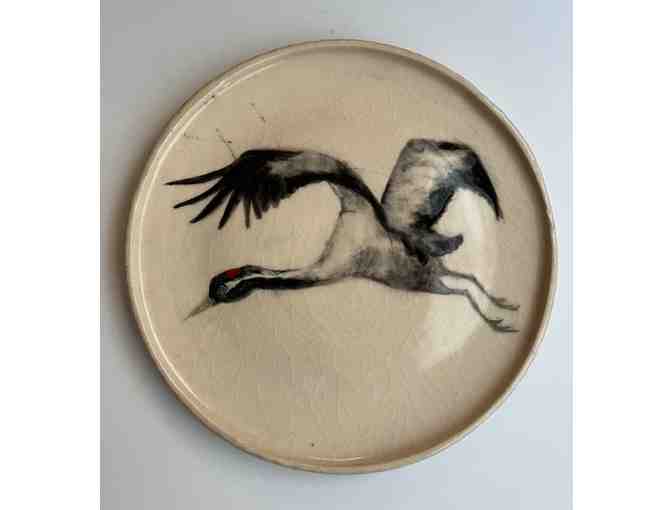 Handmade Pottery Plate with crane image