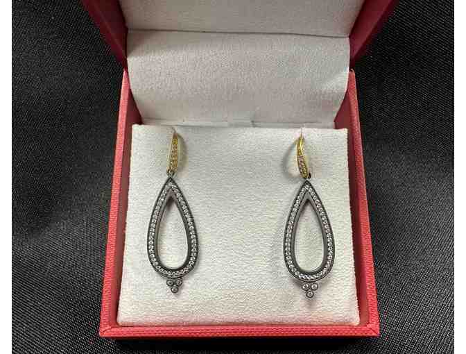 Freida Rothman Sterling Silver 14Kt Yelow Gold Plated Drop Earrings with CZ'S.