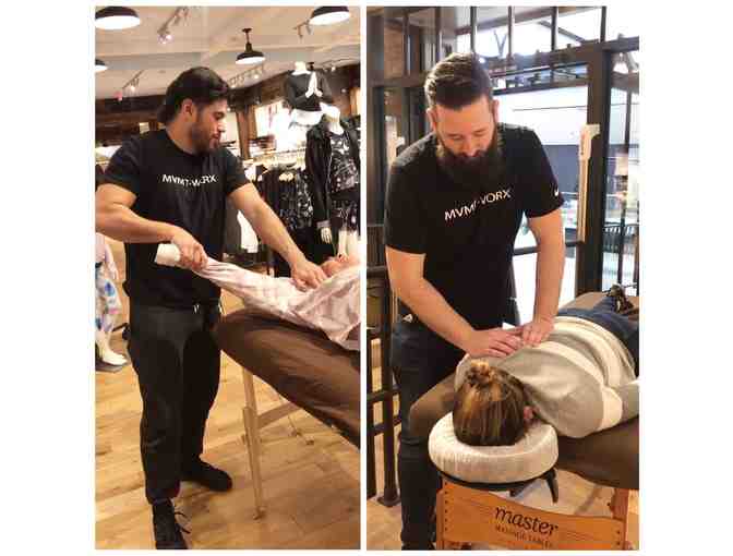 Mvmt Worx is a group of wellness practitioners that use unique and comprehensive treatment protocols for relieving pain, improving movement, and increasing overall performance. Each treatment includes focused massage to address the soft tissues, chiropractic alignment and VOILA structural balancing technique to attend to the framework, microcurrent acupoint therapy to enhance recovery and reduce stress on the nervous system, and a targeted corrective exercise session to address areas of reduced mobility or instability. We also specialize in post-surgical lymph drainage massage and body contouring as well as nutritional and supplement guidance for reaching your goals. Treat yourself and reach optimum levels of health and well-being."