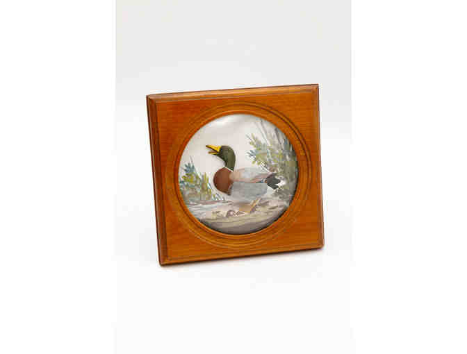 Hand painted 3 dimensional "shadow box" of a mallard drake, signed by the artist and executed in connection with a series prepared for sale by Abercrombie and Fitch in the 1940s. Duck is sculpted with plaster of Paris and then finely painted. One of a series of 8.