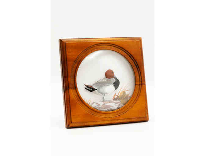 Hand painted 3 dimensional "shadow box" of a redhead duck, signed by the artist and executed in connection with a series prepared for sale by Abercrombie and Fitch in the 1940s. Duck is sculpted with plaster of Paris and then finely painted. One of a series of 8.
