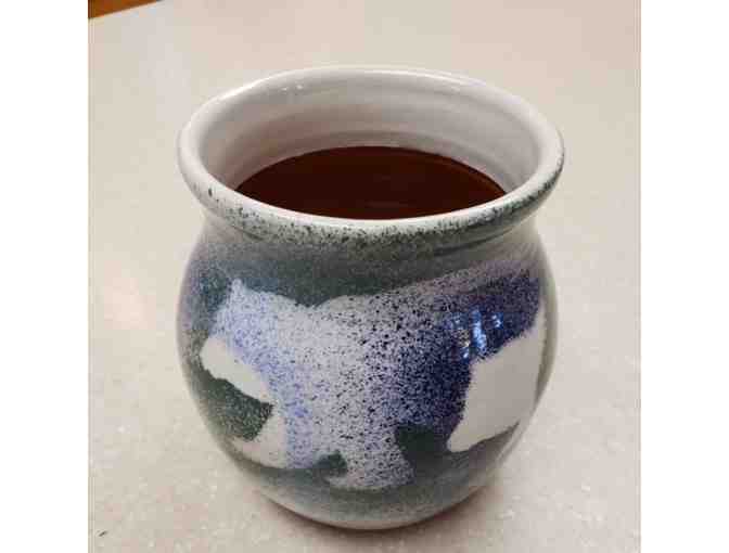 Decorative pot with bear motif. Approximately 6 inches tall and 4 1/2 inches in diameter.