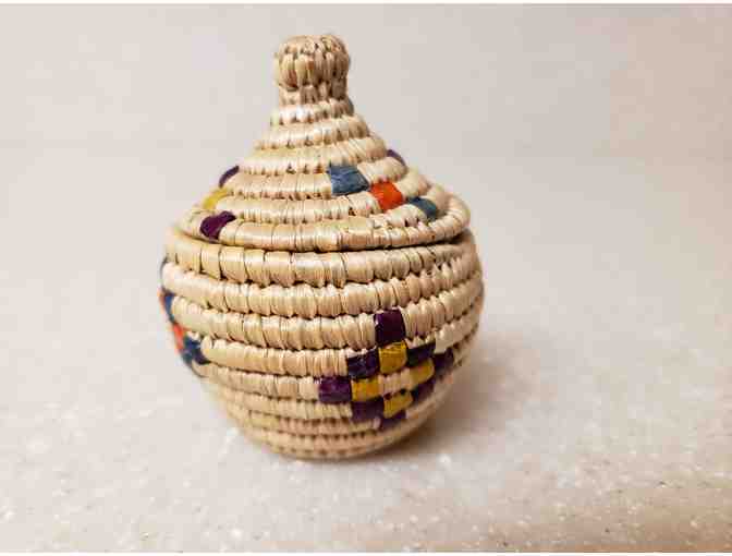 Small Yupik coiled basket from village of Goodnews Bay. Approximately 3 inches tall