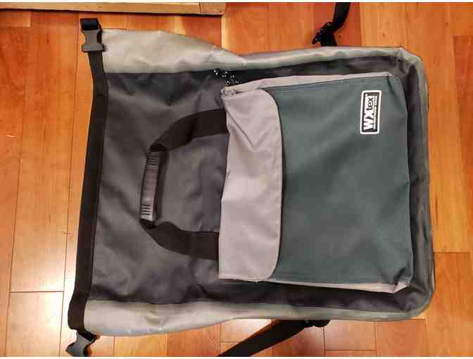 WX tex waterproof rolltop messenger bag. approximately 15" x 2-0" x 4" with side pocket.