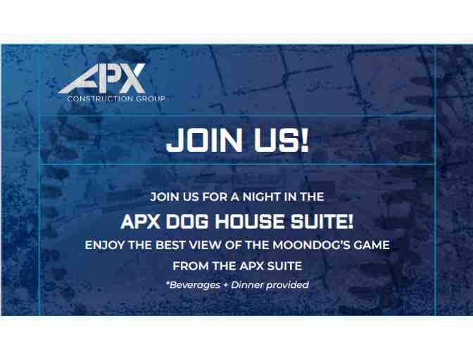 ENJOY THE BEST VIEW OF THE MOONDOG’S GAME FROM THE APX DOG HOUSE SUITE!!!
