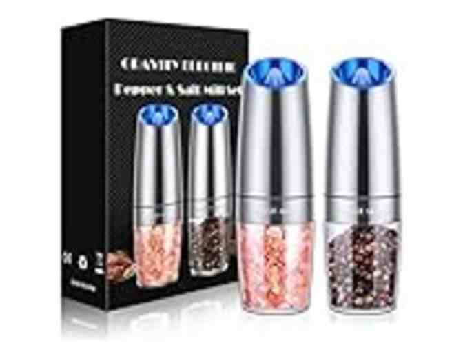 Our Electric Pepper and Salt Grinder with Gravity sensor switch, you even needn’t to press a button, Simply flipped the grinder and you will have fresh ground spices, Convenient and funny. Battery powered, each grinder requires 6 AAA batteries (batteries not included).