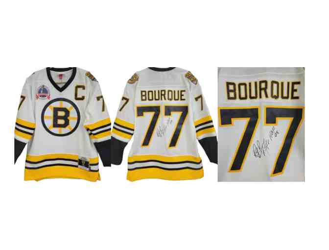 Own an authentic Wales/Campbell Conference 1990 Stanely Cup Championship, Ray Bourque Autographed "Ray Bourque HOF 04" Jersey.