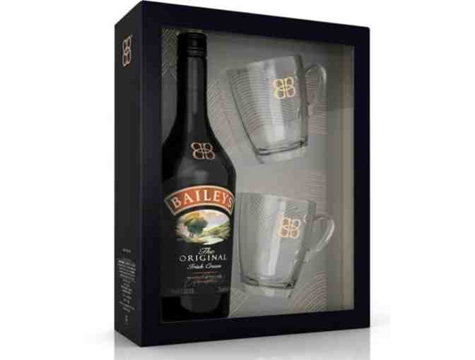 750 ml. Bottle of Bailey's Irish Cream with 2 glass mugs.