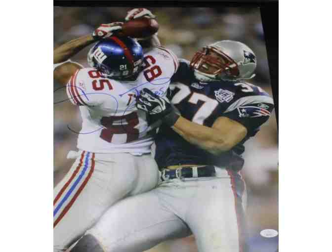 NY Giants WR David Tyree signed framed 16x20 photo. The Catch by Tyree in Super Bowl 42 propelled the GMen to their amazing upset of the previously undefeated Patriots!! 18-1