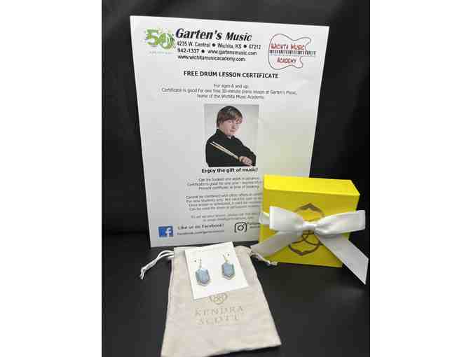 Add a touch of elegance and versatility to your jewelry collection with the Kendra Scott Hallie Drop Earrings in Gold/Blue. The striking gold-tone frame beautifully complements the bold blue stone, creating a perfect fusion of timeless sophistication and contemporary style. Designed with a lightweight construction, these earrings ensure comfort for all-day wear—whether you're attending a special event or adding a vibrant pop of color to your everyday ensemble. Plus, enjoy a complimentary lesson at Garten's Music with your purchase, making this an opportunity you won't want to miss. Elevate any outfit with this exquisite, must-have accessory!