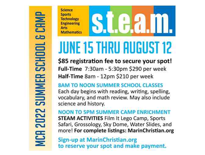 Make plans now for your student to attend MCA Summer School & Camp. The winning bidder receives one week of admission (full-time) for their entering K-5 student.