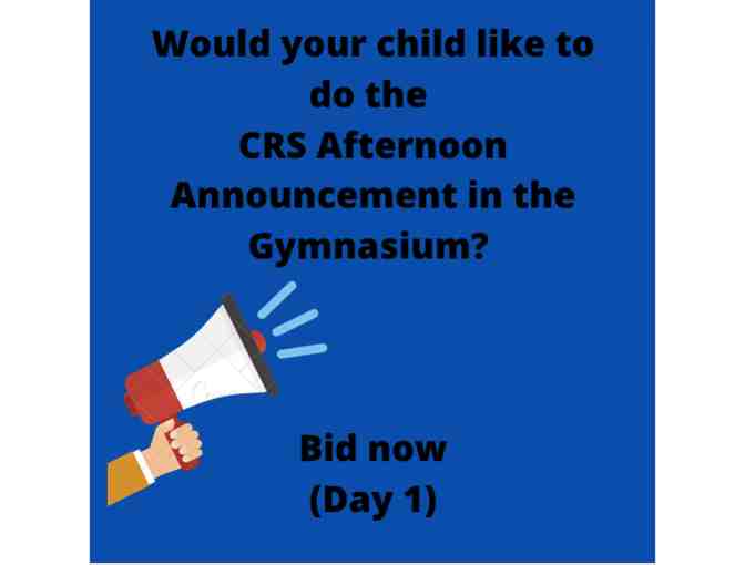 1st GRADERS: Have your child say the CRS Afternoon Announcement in the Gymnasium