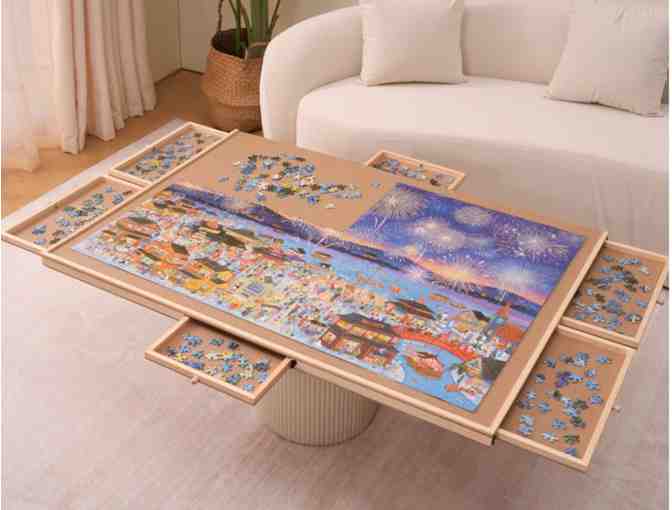 *ãÂÂSix Storage DrawersãÂÂMade from natural pine wood, this wooden jigsaw puzzle plateau is eco-friendly and structurally stable, with a smooth tabletop for easy puzzle movement. The sliding drawers allow you to conveniently store and categorize puzzles without worrying about losing them.
