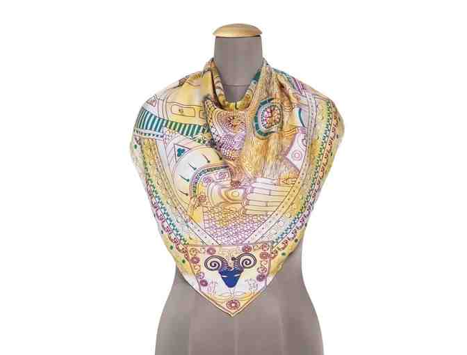 Victoria Terminus silk scarf - Yellow & white ombre silk scarf with a sketch of the Victoria Terminus, having the silk mark certification