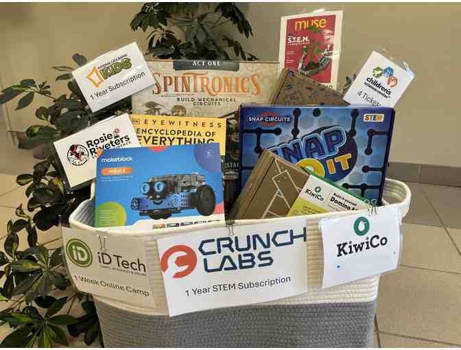 Get ready for a STEM-tacular adventure with this one-of-a-kind auction basket packed to the brim with everything your budding engineer could dream of! A year of Crunch Labs subscription boxes and six months of Kiwi Co, delivered monthly to your door, will have the kids (and adults) thinking like an engineer, while two STEM magazine subscriptions and an "Encyclopedia of Everything" will help them explore the world around them. This basket also includes hands-on STEM toys, games and activities to ignite imagination and problem-solving skills, plus an interactive coding robot that teaches kids the fundamentals of programming while they play! Lastly, the highlight of your child’s summer is sure to be a week of iD Tech online camp. Don’t miss out on this opportunity to STEM your child's curiosity in the most fun and exciting way possible!