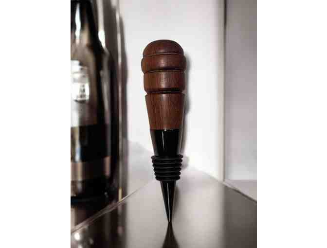 This walnut wine stopper is designed and made by Curt Adams. It is a 5 inch hand turned walnut wine bottle stopper.