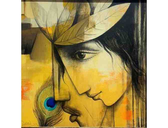 The Mumbai based artist, Vijay Belgave was born in Latur. He has been greatly inspired by the simplicity of rural life in his hometown, especially by its sensitive but strong women. Innovative textures with stylized figures, his subjects convey the theme of love and its many levels of expressions in a melody of colors in harmony. He is the recipient of numerous awards and held many exhibitions
