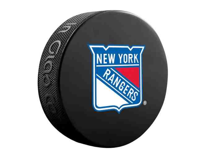 Autographed Puck Package autographed pucks by #13 Alexis Lafrenière, #79 K’Andre Miller, #39 Sam Carrick