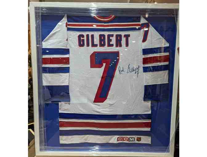Rod Gilbert #7, Rare Framed Non-game used Autographed Replica Jersey