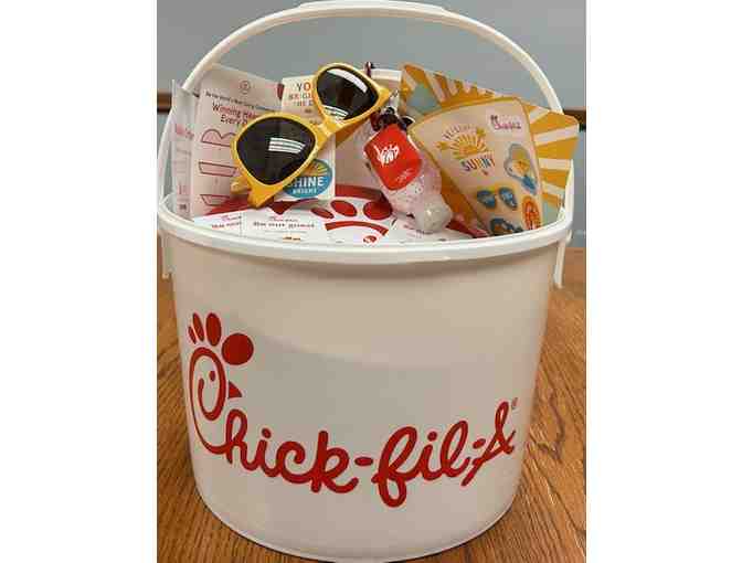 Chick-fil-A Gift Basket - Basket has a frisbee, sunglasses, hand sanitizer, and stickers and Chick-fil-A gift cards: Present for one of the following free: