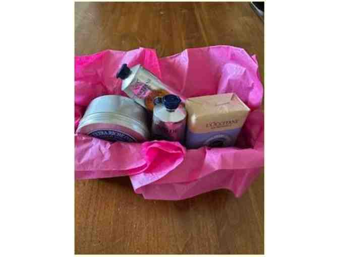 75 mL Hand Cream (lavender scent), 6.9 oz. Ultra Rich Body Cream (jasmine scent), 159 mL Shea Butter Foot Cream, 8.8 oz. Shea Butter Hand and Body Soap (lavender scent).