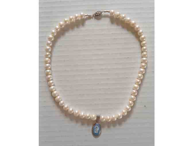 Chinese Freshwater Pearls with Vintage Silver Wedgewood Pendant