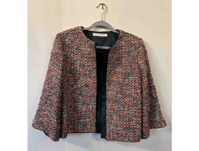 Gold threaded tweed jacket hand sewn in the Hudson Valley by top designer Michael Boris; new without tags. Size 8.