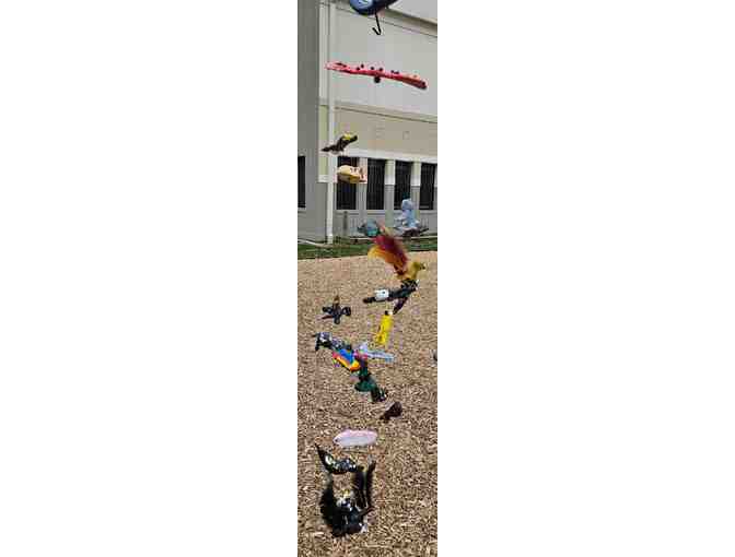 The students made a mobile with clay animals from North and South America as that has been the area of study this year. Each student made an animal that they chose from their study. We used air dry clay to mold the animal and after it dried, we painted them with acrylic paints. These animals are strung together with fishing line.