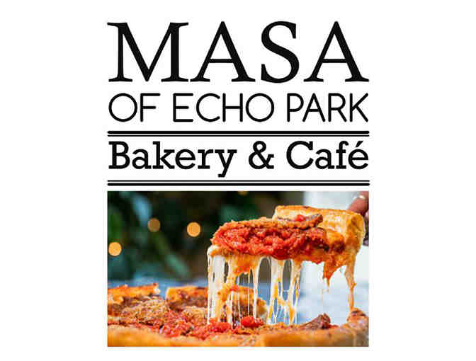 Masa of Echo Park is a bakery and cafe that specializes in Chicago-style pizza and offers a variety of Italian, Spanish, French, midwest-American and Cuban menu options. Owners Rob Rowe and Rhonda Reynolds named Masa after the revolving oven that has been used in different restaurants on the premises for decades, which allows them to bake their Chicago-style pizzas with the traditional cornmeal crust. The atmosphere, much like its Echo Park surroundings, is designed to be a cultural melting pot that welcomes anyone who wants to enjoy a great meal.