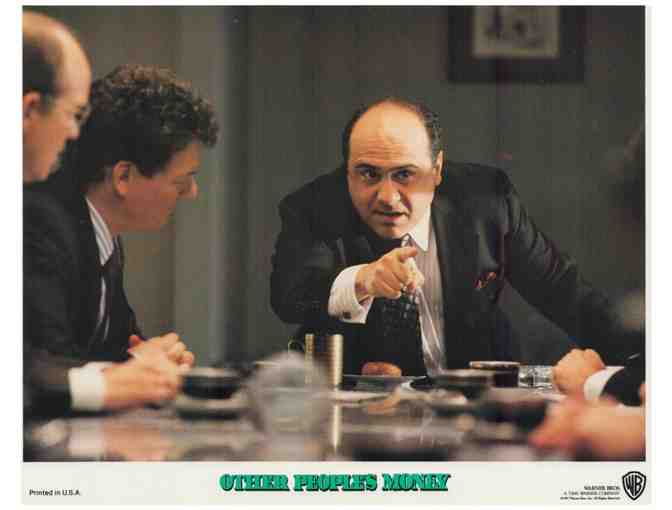 Other Peoples Money, the 1991 Norman Jewison Wall Street hostile takeover comedy starring Danny DeVito, Gregory Peck, Penelope Ann Miller, Piper Laurie and Dean Jones.