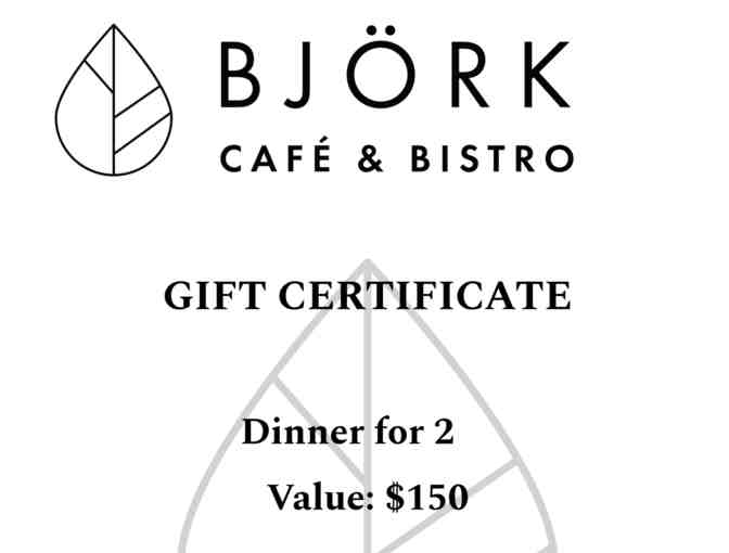BJORK CAFE & BISTRO GIFT CERTIFICATE Dinner for 2 Value: $150