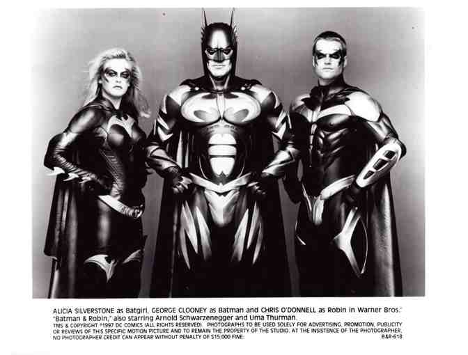 Batman and Robin, the 1997 Joel Schumacher comic book superhero action sequel starring George Clooney, Alicia Silverstone, Uma Thurman, Arnold Schwarzenegger, Chris ODonnell, Michael Gough, Pat Hingle and Elle Macpherson.