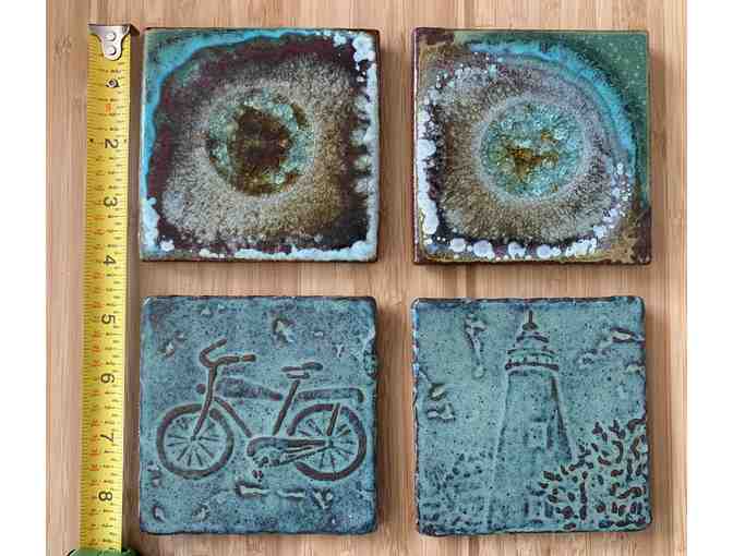 All four in the same beautiful color scheme - two feature natural geodes and the others are a bicycle and a light house.