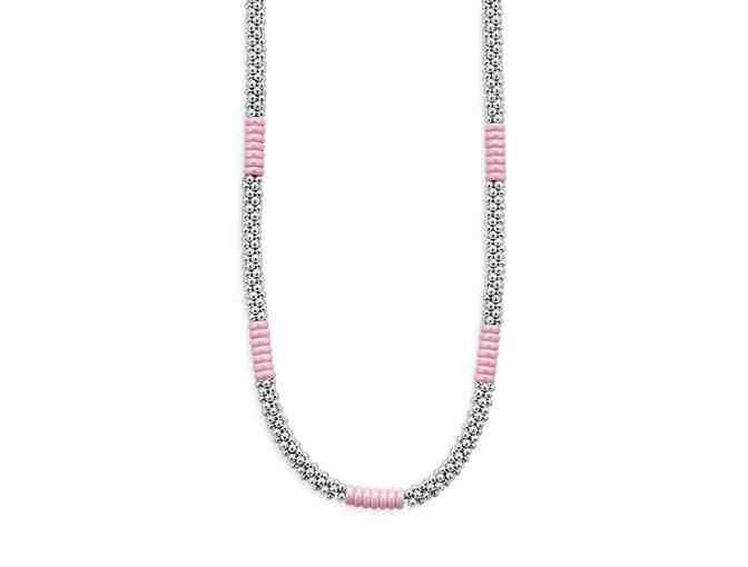 A pink ceramic and sterling silver Caviar beaded necklace that is finished with signature lobster clasp.