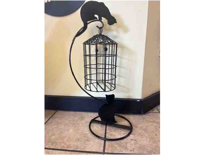 Very cute cat stand, holding cage - for flowers or candles, black. 24" high.