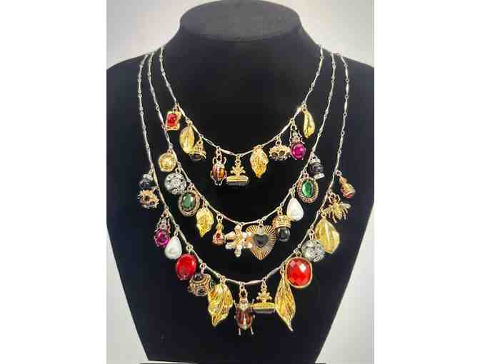 3pc vintage elegant Leaf Insect Heart Pendant Necklace set. Luxurious, multi-layered rhinestone imitation pearl banquet.