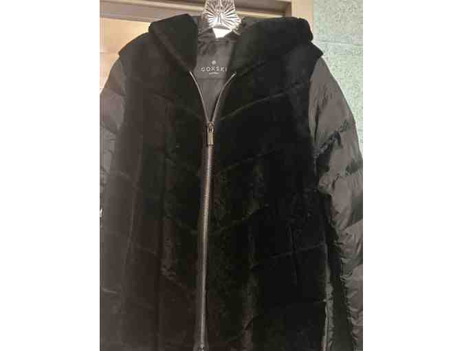 Womens Black Winter Nylon & Fur Puffer Coat MSRP $1500