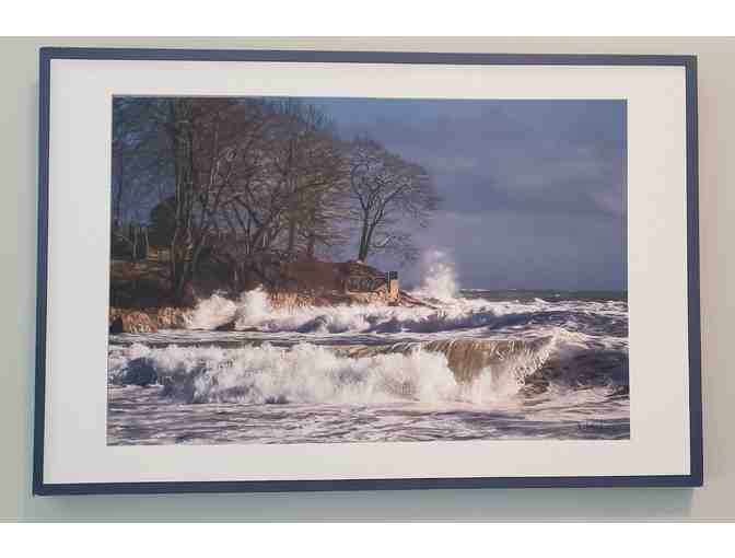 20” x 30” Framed photo enhanced Print depicting the 1620 Rock at West Beach by Beverly photographer, Neal Levy. Find more of his work at Off the Wall PhotoArt.