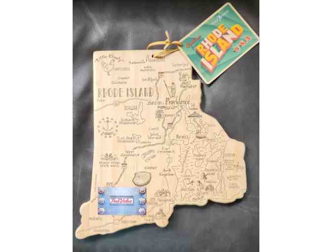 True Value donated this beautiful RI Cutting and Serving board crafted from natural, sustainable bamboo. Celebrate the beauty of RI with this board featuring landscape art by Summer Stokes. The value of this item is $50.