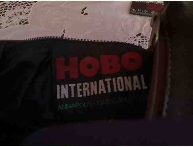 Hobo International, you overall good condition, 10" high by 13" across top, zipper, tapered to 6" along bottom.