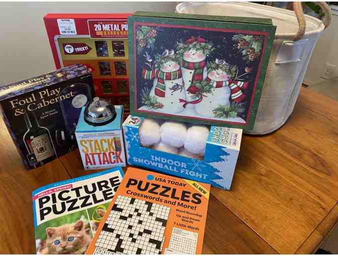 Actually this large and accommodating canvas tote ($10) holds an assortment of puzzles to challenge one or more problem solvers from now through the end of the year (think winter’s return):