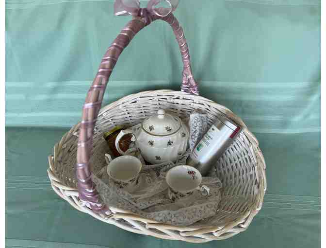 This lovely basket includes a teapot and 2 cups and saucers of Royal Crest Fine Bone China made in England, a tin of Tea Temptations Tea and Vermont local honey. Perfect for an elegant tea time, or anytime for a special treat!