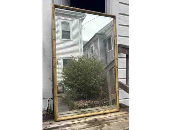 In a tiki mood? This vintage “faux bamboo” blond wood-frame mirror with etched glass will make a big statement! Very heavy, a fabulous period piece!