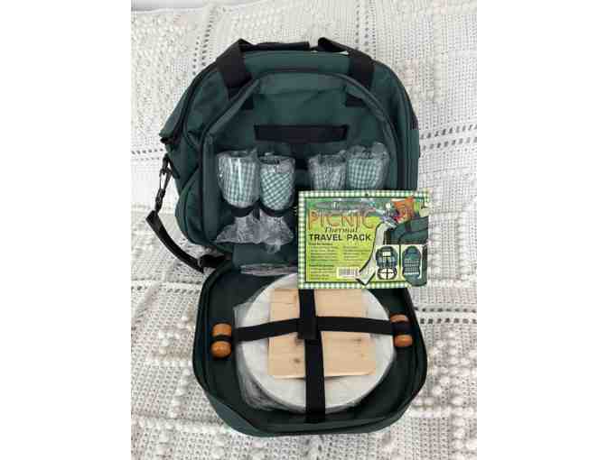 Travel pack includes insulated inner pouch, 4 storage pockets, shoulder strap, and carrying handle.